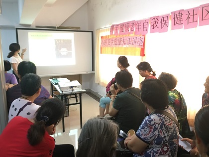 为提高社区中老年居民的生理心理健康意识,向社区中老年人普及健康保健基本知识,湖贝社区党群服务中心在2019年8月9日下午开展“携手健康”老年自我保健社区活动。