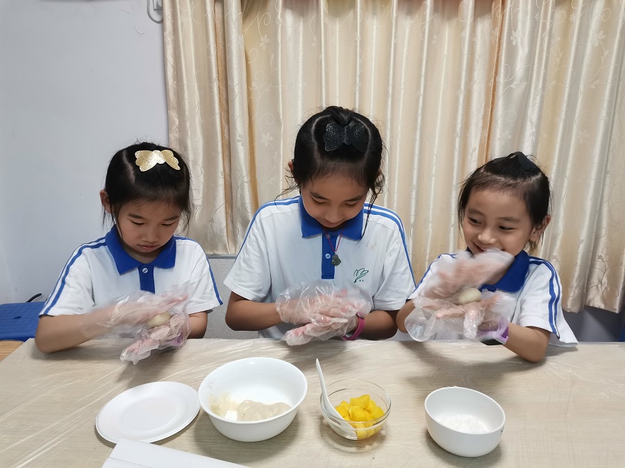 此次工作坊共设置了3种美食制作,分别是“美味寿司”、“水果果冻、“甜甜糯米糍”。刚开始学习时,小朋友们都感觉到不知所措,经过一次次的共同努力,每个小朋友们都制作出精致而可口的美食。制作完成后,组员们迫不及待的进行品尝,纷纷为自己点赞,还将美食打包留给家人。