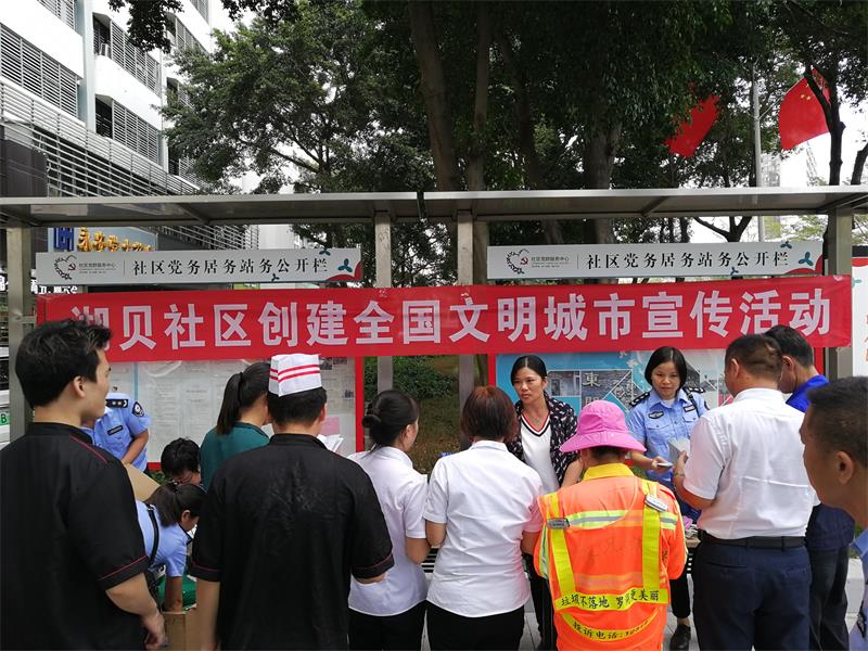 罗湖社区家园网讯:为进一步推进全国文明城市创建工作,不断提高居民群众对创建文明城市的知晓率、支持率和参与率,营造“人人支持创文,人人参与创文”的良好氛围,2019年10月22日下午,湖贝社区开展宣传活动,向沿街店铺及过路居民群众发放宣传手册,并呼吁从自身做起,从现在做起,从细节做起。