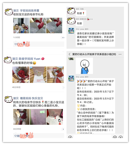 为弘扬中华民族的传统美德,营造浓厚的母亲节氛围,2020年5月7日—12日,湖贝社区党群服务中心开展“爱的行动从心开始”亲子关系促进小组,围绕母亲节系列线上活动,丰富亲子家庭“宅”在家里的生活,提升亲子之间的互动交流,促进亲子关系。