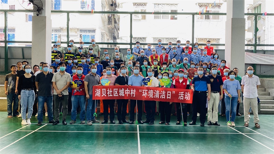 罗湖社区家园网讯:8月28日星期五下午,由湖贝新村环境长于卓主任带队,联合城区治理办、执法队、锦湖老年人协会、股份公司民兵、环卫外包服务员工、社区工作站全体人员及青少年志愿者,参加社区“环境清洁日”活动,助力全国文明城市创建工作。大家动手清理辖区路面垃圾、铲除小广告,志愿者们向沿街商铺派发创文宣传单,为创建文明城市营造出弄浓厚的氛围。