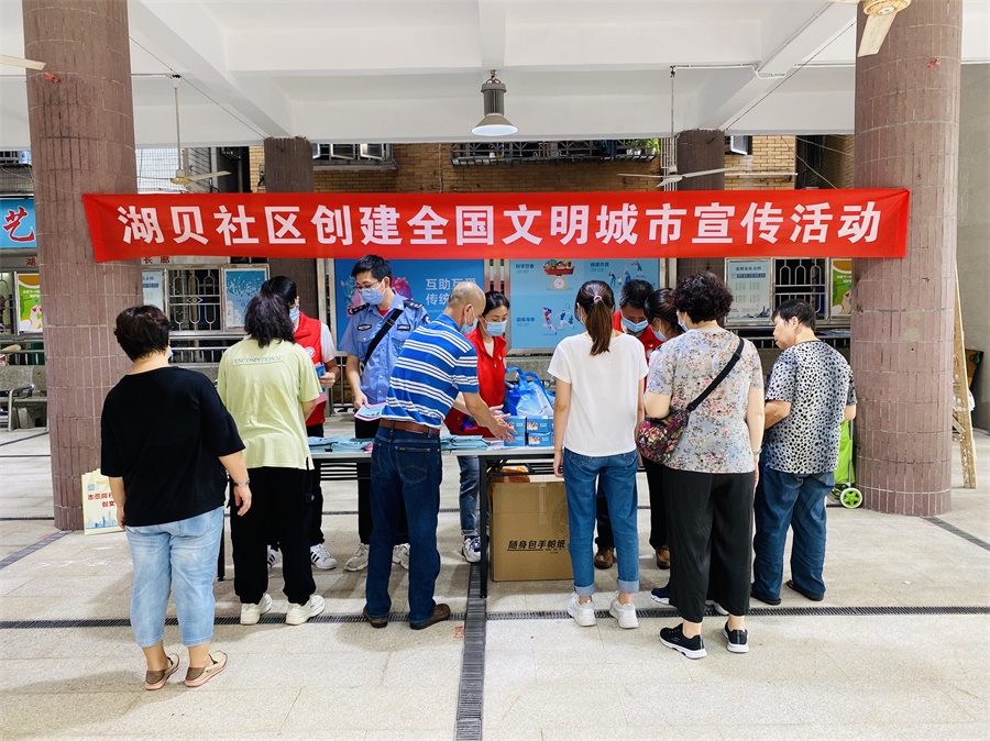 罗湖社区家园网讯:为深入推进省级文明城市创建工作,全力打造环境优美、卫生清洁、文明有序的城市新面貌,助力创文工作各项任务圆满完成,2020年9月4日,湖贝社区党委在湖贝新村老人活动中心开展创建文明城市宣传活动。社区工作人员向居民派发创文宣传品、宣传册,吸引了众多居民前来参与,营造出浓厚的创文氛围。