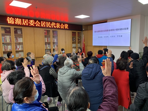 会上,首先由工作人员宣读“锦湖社区居民委员会第九届居民小组长建议名单”。接着对第九届居民小组长建议名单行举手表决,通过举手表决,最后推选出新一届居民小组长。