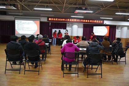 为了更好的为社区和居民家庭提供服务,制定切实可行的服务计划和执行进度,2021年1月13日上午,由社区党委牵头,社区党群服务中心邀请社区工作人员、社区居民代表和辖区公益组织、爱心企业代表,在湖贝社区活动中心多功能室召开了《湖贝社区党群服务中心2020年度服务聚焦会议暨2021年度服务项目遴选会议》。