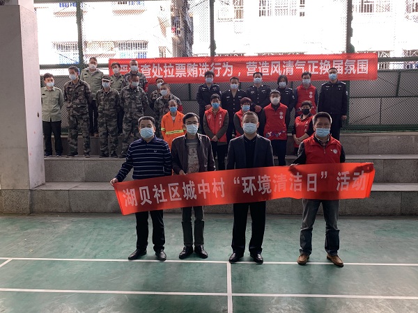 罗湖家园网讯:1月29日星期五下午,由湖贝新村环境长于卓主任带队,联合城区治理办、执法队、股份公司民兵、环卫外包服务员工、社区工作站全体人员及社区公益服务人员,参加社区“环境清洁日”活动。大家动手清理辖区路面垃圾、铲除小广告,为美化社区环境出一份力。