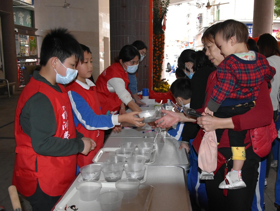 罗湖家园网讯:农历正月十五是我国重要传统节日“元宵节”,其有着深厚的文化底蕴,以及传承已久的节日习俗。为延续社区欢度春节的喜庆氛围,湖贝社区党群服务中心于2021年2月26日下午,结合社区志愿者服务宣传,在社区广场开展了“文化传承“义”起来--社区志愿者服务宣传”活动,向居民发放热腾腾甜汤圆的同时,进行第二季社区志愿者招募。