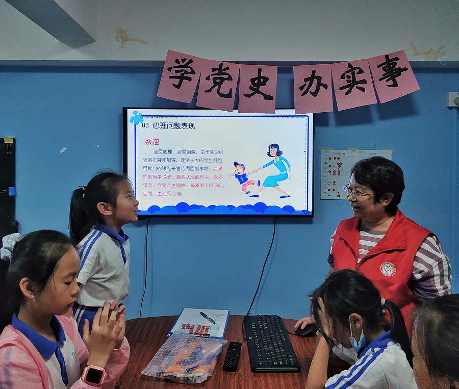湖贝社区党群服务中心在社区党委引领下,广泛开展“学党史·办实事”服务活动,为了切实地关心关爱辖区未成年人的健康成长,于2021年4月22日下午,在中心多功能室为在深务工家庭子女举办了一场心理健康知识讲座活动,活动中,社工通过互动分享、生活案例讨论、心理健康知识讲解、情景故事分析、有奖问答等形式和通俗易懂的语言,为小朋友讲解了青少年心理健康知识和自我情绪调节的方法和技巧。