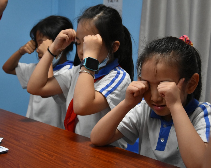 活动中,社工通过“慧眼识图找规律”互动游戏体验、图文知识讲解、有奖问答及“眼保健操实操”等形式和通俗易懂的语言,为小朋友讲解眼部健康知识和近视的危害和预防等视力保护常识,并带领小朋友学习实操“眼随手动”无接触眼保健操。同学们听得特别投入,学得格外认真,很快就能够合着音乐的节拍和老师一起熟练的操作眼保健操了。