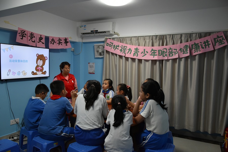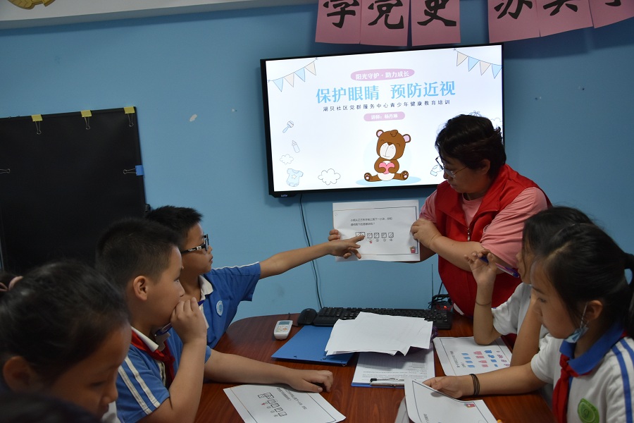 湖贝社区党群服务中心于2021年5月13日下午,在中心多功能室为在深务工家庭子女举办了一场主题为“呵护视力远离近视”青少年健康教育培训活动,为在深务工家庭子女举办小学生眼部健康知识培训活动,丰富了社区青少年课余生活,引导青少年学习眼部知识和视力保健常识,提高了社区青少年视力保护意识和减缓、减少近视等眼部疾病的发生,促进青少年身心健康。