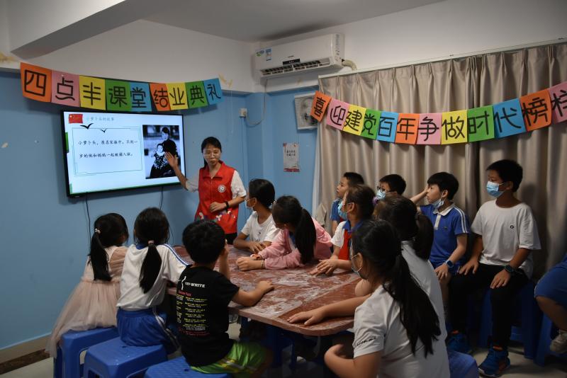 6月25日下午,湖贝社区党群服务中心在社区党委的带领下,为社区四点半课堂的学员小朋友们开展了“喜迎建党百年--学党史,强信念,跟党走”的主题结业典礼,活动全程严格按照“疫情防控”要求进行登记、测温、防疫消毒等准备,陪伴小朋友们度过了本学期最后的美好时光。