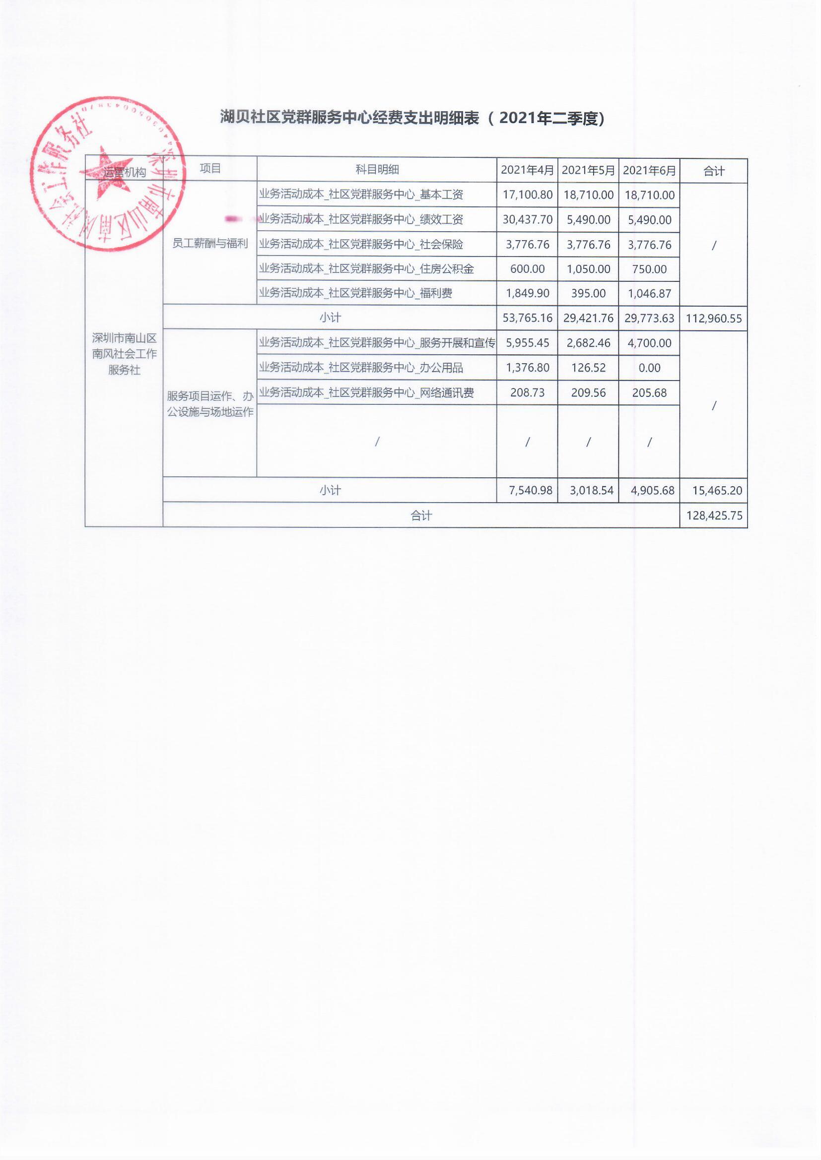 湖贝社区党群服务中心经费支出明细(2021年二季度)