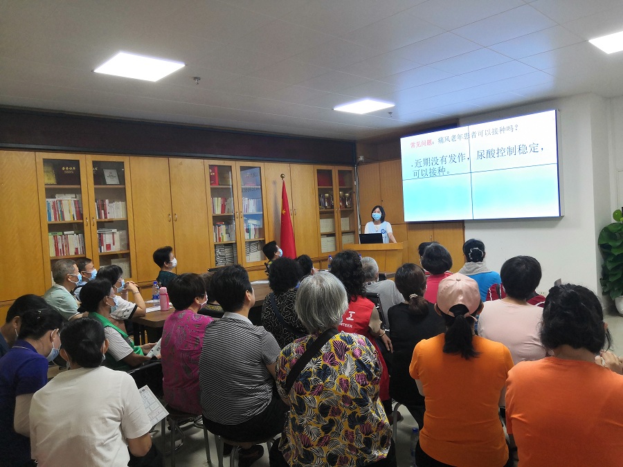 通过前期的调查了解到社区居民希望能了解清楚疫情防控期间疫苗接种及老年慢性疾病的关联问题;健康安全科普小组以社区防疫防控安全为前提,围绕社区长者最迫切的问题进行讲解。为了让参与的老年人更加清晰的了解慢性疾病与接种的关联,医生整理了相关的信息,以PPT图文多样的形式向参与者科普了60岁以上长者接种疫苗及接种前注意事项,患有慢性疾病的长者该如何注意自身健康等问题,在开展的过程中,医生也对居民提出的问题进行了详细的解答。