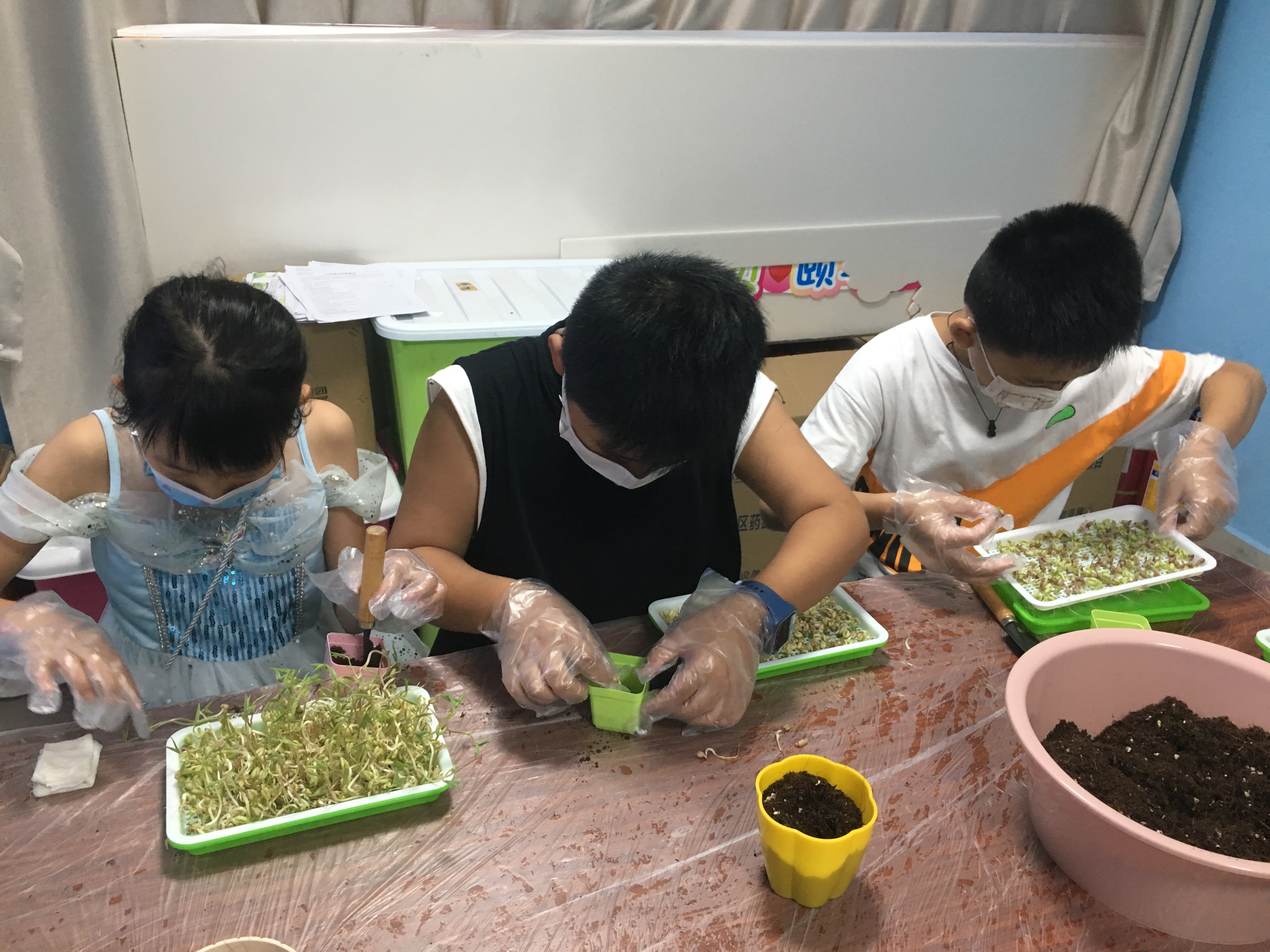 首先,社工带领小朋友一起学习了豆芽菜的培育知识,小朋友亲手种植、培育豆芽菜,认真观察、记录下植物生长的过程,共同探索植物生长的秘密;小朋友还运用色彩斑斓、形状各异的树叶和花朵创作了一幅幅创意满满的贴画作品《海底世界》;普普通通的书签在小朋友的巧手下,变化成艺术压花书签,精美独特。最后,小朋友一起分享种植豆芽的心得,将豆芽苗移栽到花盆里,让植物的生命延续下去。