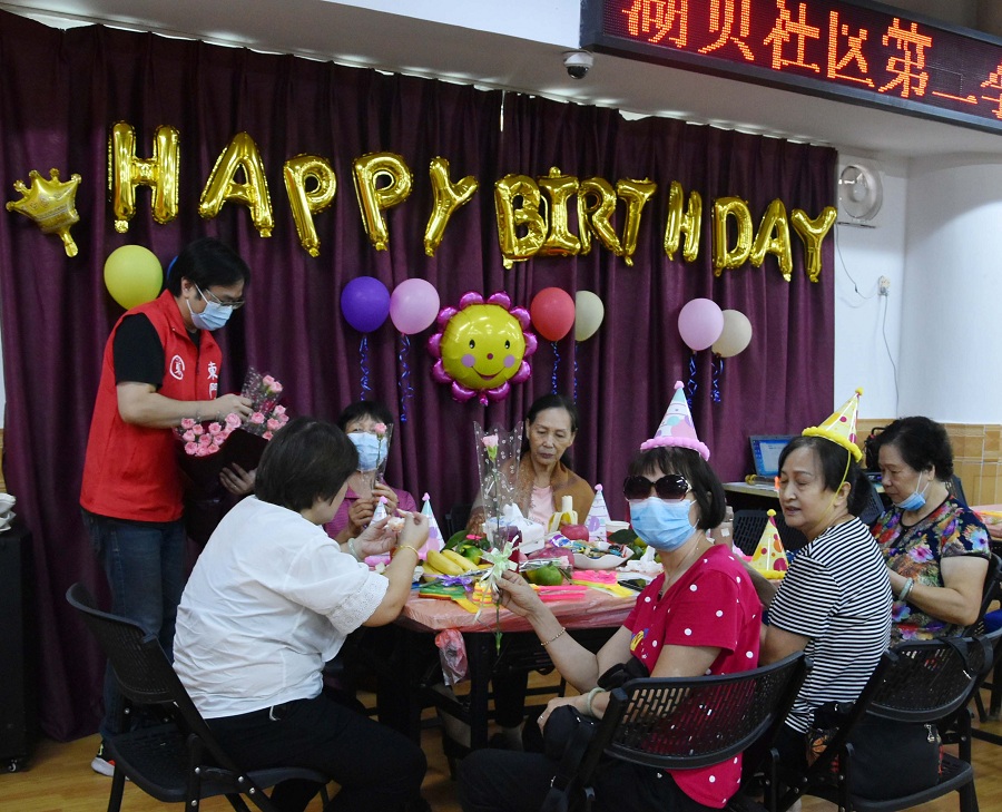 湖贝社区党委、湖贝社区居委会、湖贝社区党群服务中心于近日在湖贝社区联合开展了东门街道民生微实事——“幸福湖贝 ·颐年相伴”湖贝社区第二季度长者季度集体生日会。