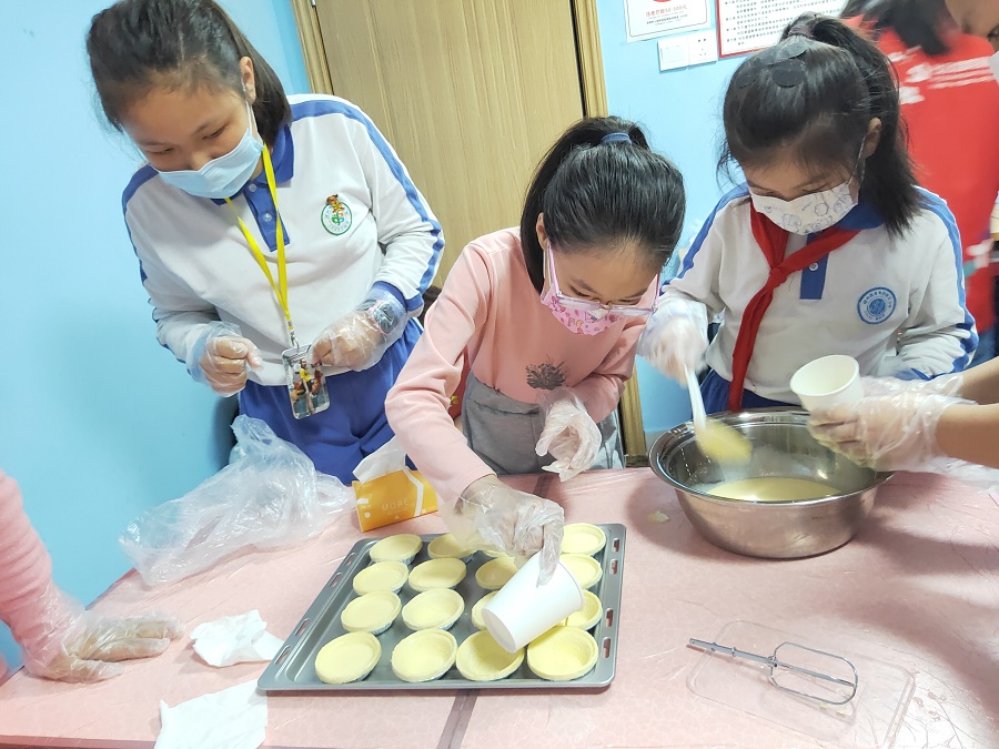 活动期间,小朋友认真观看蛋挞制作的过程,并组队分工合作,完成制作了美味的蛋挞,小朋友们一起品尝团队制作的蛋挞,口感嫩滑酥脆。有个小朋友骄傲地分享说:“我们做的蛋挞太好吃了,像妈妈的厨艺”。最后,社工带领小朋友小心翼翼地打包蛋挞,带回家跟自己的爸爸妈妈和好朋友一起分享美食。