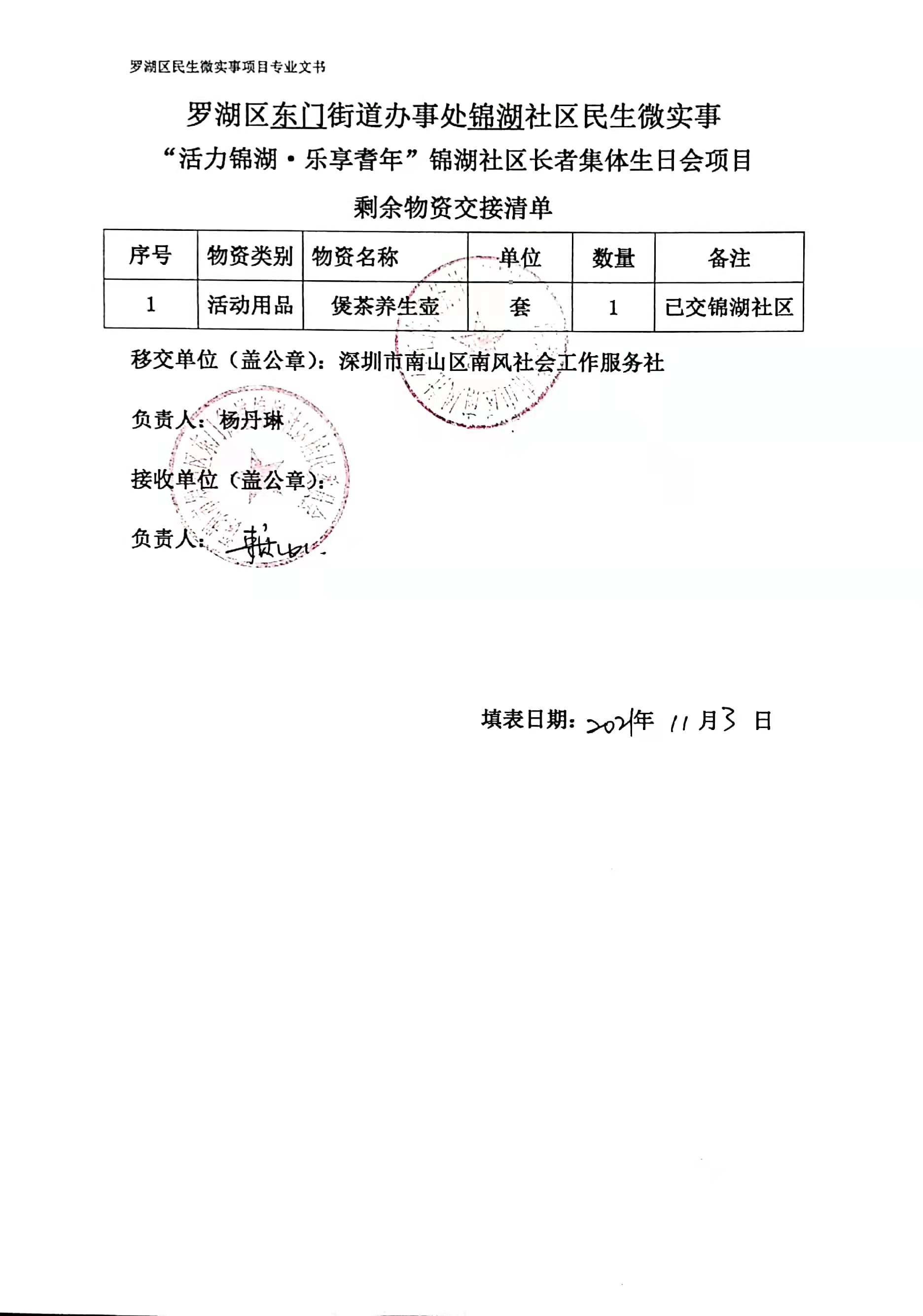 锦湖社区长者集体生日会项目剩余物资交接清单