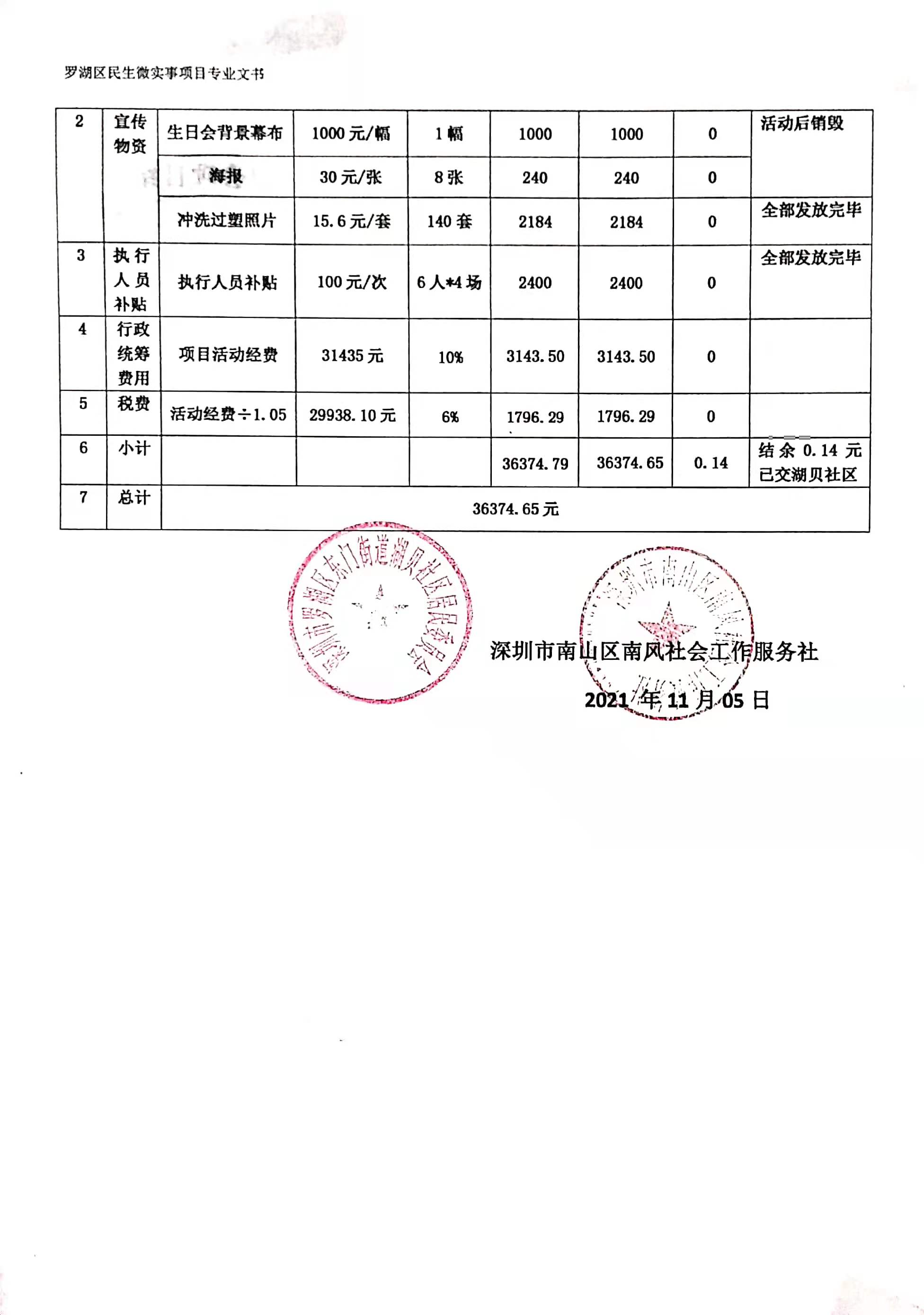 罗湖区东门街道湖贝社区长者集体生日会项目结算表