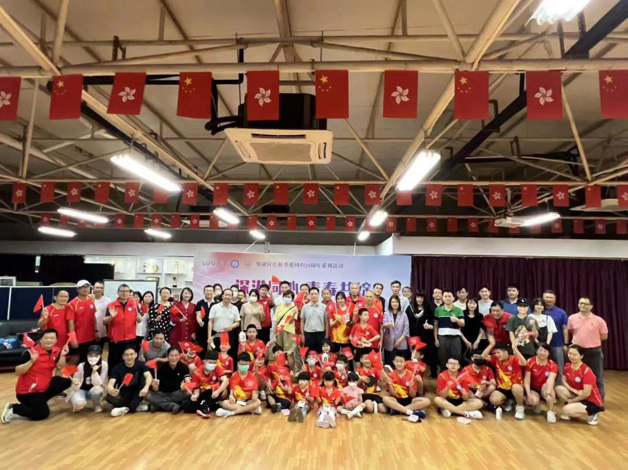 罗湖区庆祝回归25周年系列活动之“深港同心 青春共绽”——“手牵手 向前走”罗湖区2022年深港青少年庆祝香港回归25周年乒乓球联谊活动在湖贝新村活动中心四楼乒乓球室举行,此次活动在深圳罗湖海外联谊会、共青团罗湖区委员会、东门街道党工委指导下由香港深圳东门同乡会、东门港人联谊会、东门街道新时代文明实践所主办,50多位深港乡亲、深港青少年欢聚一堂,以球会友共同庆祝香港回归25周年。