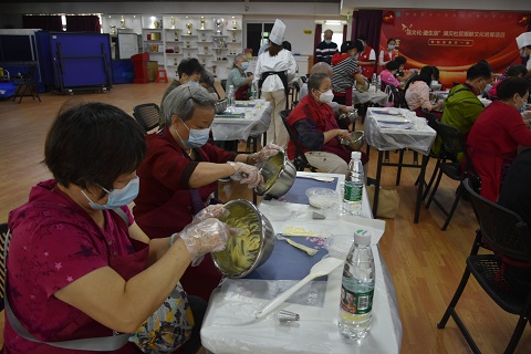 活动中,虽然阿公阿婆们的肢体和手的动作稍显缓慢,但依然能感受到他们年轻时的丰富的生活技能经验和现在对生活的热情。看着一盘盘自己亲手制作的曲奇饼干散发着诱人的黄油和奶香出炉了,爷爷奶奶们脸上露出开心的笑容,兴奋得像个孩子。邻里和谐,合家安康,岁月静好,想必这也是爷爷奶奶向往的幸福甜蜜时光吧。