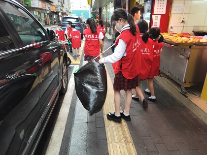 湖贝社区小巷间,大道上在放学后总能见到社区小小志愿者的身影。
