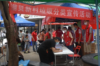 湖贝社区垃圾分类宣传活动进行中,吸引了大量居民前来参加。