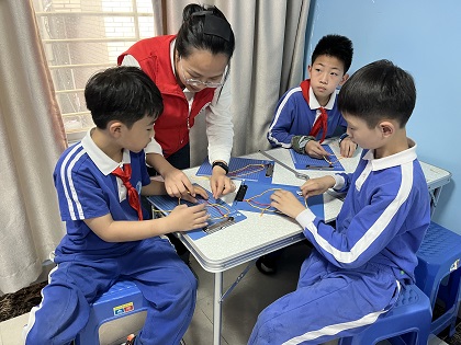 2023年4月28日,湖贝社区党委、社区新时代文明实践站、社区党群服务中心开展“非遗润童心 文化薪火传”湖贝社区青少年非遗文化体验工作坊最后一节DIY中国结主题活动。
