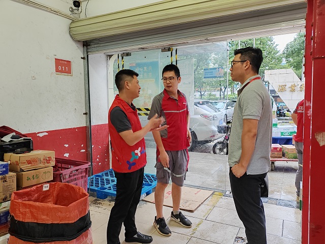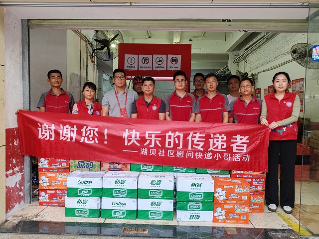 慰问团来到京东湖贝站湖贝营业部,为骑手们送上矿泉水、功能性饮料、泡面等物资,并与新就业群体劳动者们进行了深入的交流,认真倾听大家的心声,了解他们工作中遇到的困难,广泛收集意见、建议,并叮嘱大家要保证安全行驶,户外工作时也要注意防暑降温、劳逸结合。在收到“暖心物资”和慰问关怀后,骑手们纷纷表示,感谢社区的关心关爱,让大家感受到社会大家庭的温暖和对新就业群体的重视,今后将以更加饱满的热情投入工作中,更好地为社区居民服务。