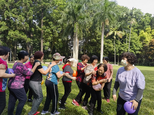当天在中心集合后社工带领长者们一同前往人民公园,一路上大家欢声笑语,谈笑风生,经过20多分钟的徒步,到达了目的地。社工首先向大家介绍本次活动流程,并进行热身小游戏。接着为了增加趣味性和互动性,社工带领长者们一起玩“珠行天下”和“蜈蚣行”等游戏,长者们玩得不亦乐乎,现场充满了活力和快乐,笑声回荡在整个公园,营造出一片愉悦的氛围。