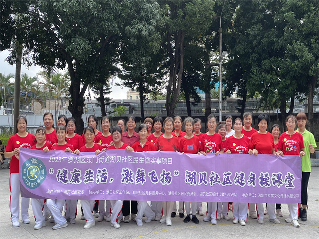 罗湖家园网讯:为了丰富社区文化生活,同时扩大社区中老年人健身操团体,湖贝社区在7月至11月开展民生微实事项目“健康生活,激舞飞扬”湖贝社区健身操课堂。本次课堂由湖贝社区党委主办,湖贝社区工作站、湖贝社区党群服务中心、湖贝社区居民委员会、湖贝社区新时代文明实践站协办,深圳市立实文化传播有限公司承办。