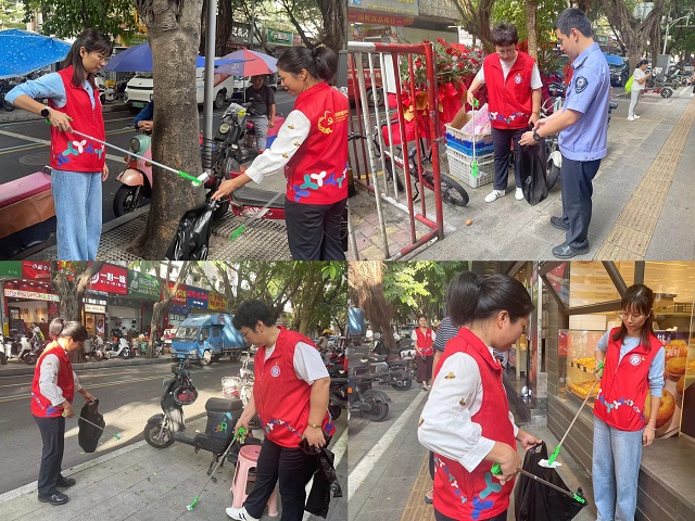 志愿者们早早地来到活动集合点,做活动前的准备工作。活动开始后,他们秉承着不怕脏、不怕累的志愿精神,认真负责、分工合作,沿着不同路线捡拾路边纸屑、果皮、烟头、塑料包装等各种生活垃圾,对社区绿化带周围以及道路等区域进行了清理和打扫,同时对乱停放的电动车进行整改。“清洁社区环境,传递的是文明和美德”,志愿者们一边捡拾垃圾,一边对来往行人和附近居民进行友好劝导,用实际行动共建良好环境,共享美丽湖贝。