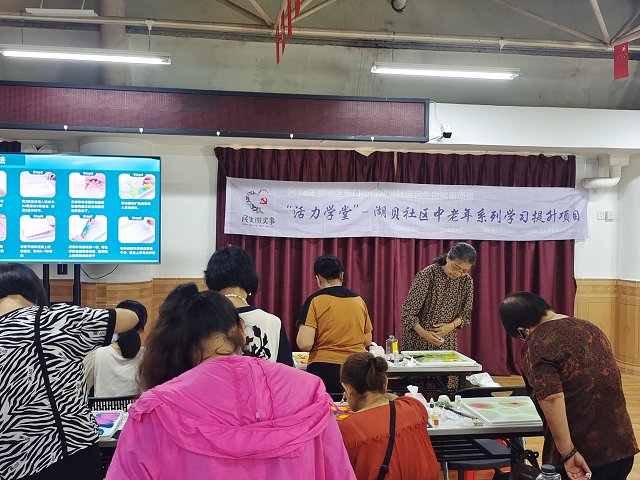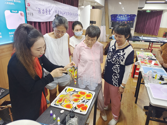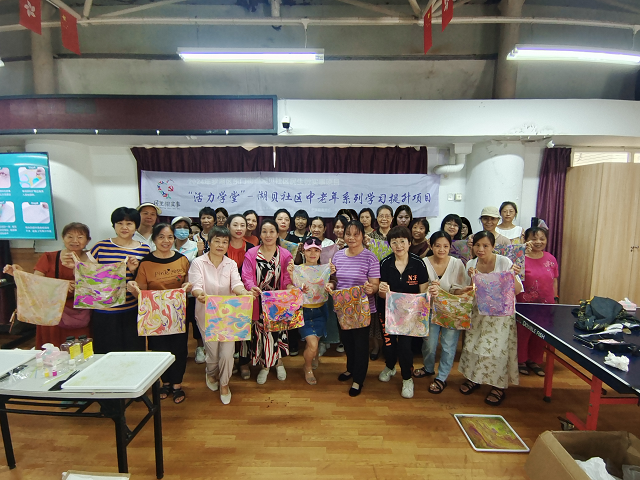 湖贝社区开展民生微实事项目《“活力学堂”-湖贝社区中老年系列学习提升项目》--水拓丝巾手工制作课堂第一场