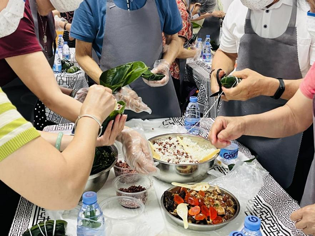 为了协助居民们能够更好地掌握包粽子的技巧,社区特别邀请了经验丰富的烘焙老师进行现场教学。在老师的协助下,居民们纷纷动手尝试。大家一边交流着包粽子的心得,一边分享着生活中的趣事,现场欢声笑语不断。有的居民手法娴熟,包出的粽子棱角分明、大小均匀;有的居民则是初次尝试,包出的粽子形状各异,但同样充满了乐趣。大家相互帮助、相互学习,共同体验着传统手艺的魅力。经过一番努力,一个个饱满的粽子在居民们的手中诞生了。看着自己的劳动成果,大家的脸上都洋溢着自豪和满足的笑容。
