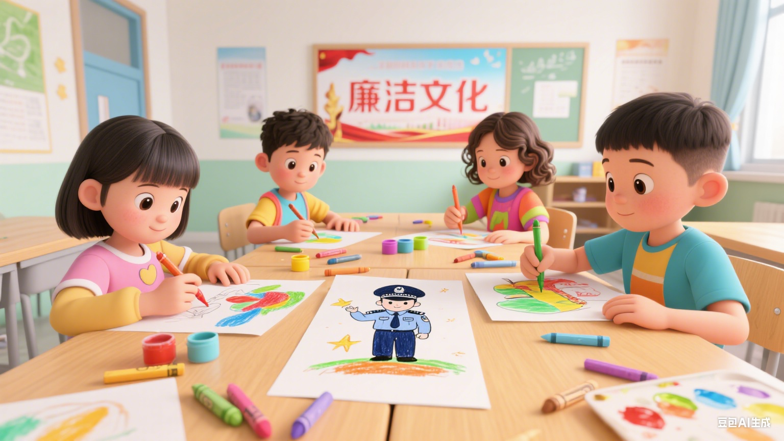 【活动内容】:用画笔描绘廉洁故事、廉洁人物等,搭配廉洁知识讲解,引导孩子们在创作中理解廉洁内涵,培育廉洁意识,让阳光正气伴随成长。