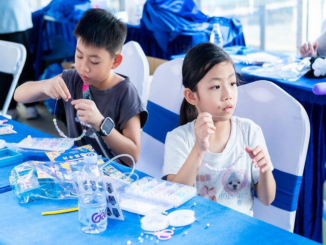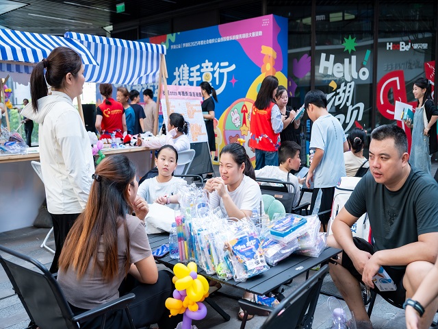 参与跳蚤市场捐赠的小摊主和居民们,还收获了一份特别的惊喜——来自爱心企业资助的“爱心传递手工坊”。凭“爱心种子卡片”,孩子们领取了手工材料包,在家长陪伴下制作寓意“心连心”的手链。“我要把手链送给隔壁奶奶!”小朋友们认真串珠子的身影,让现场充满温情。这些手链不仅是手作的成果,更承载着社区居民对彼此的关怀。