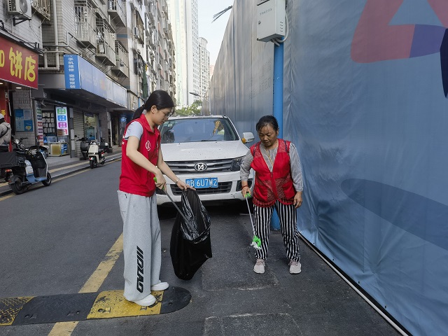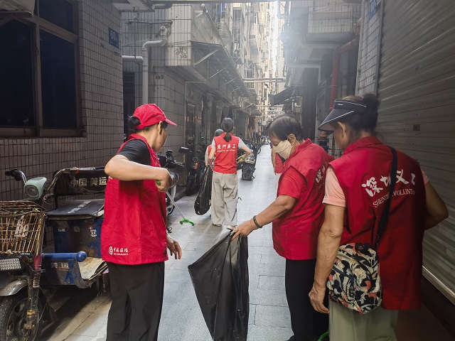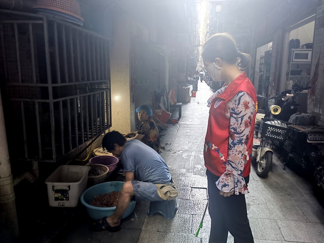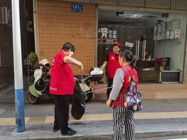 活动当天,在社工的带领下,志愿者们深入社区楼栋小巷、沿街商铺,对社区内的卫生死角、绿化带垃圾、公共区域杂物等区域进行全面排查与清理。大家分工协作,不怕脏、不怕累,手持工具细致清捡每一处散落的纸屑、果皮、废旧物品,不放过任何一处影响环境的 “小隐患”。并向过往居民耐心讲解基孔肯雅热的传播途径、典型症状及预防要点,引导居民做好家庭防蚊措施。“基孔肯雅热主要通过伊蚊叮咬传播,大家一定要清理家中的积水、下水道积水,从源头减少蚊虫滋生。”面对正在路边清洗食材的商家,志愿者反复叮嘱,将防控知识传递到每一个细节中。