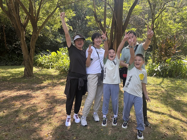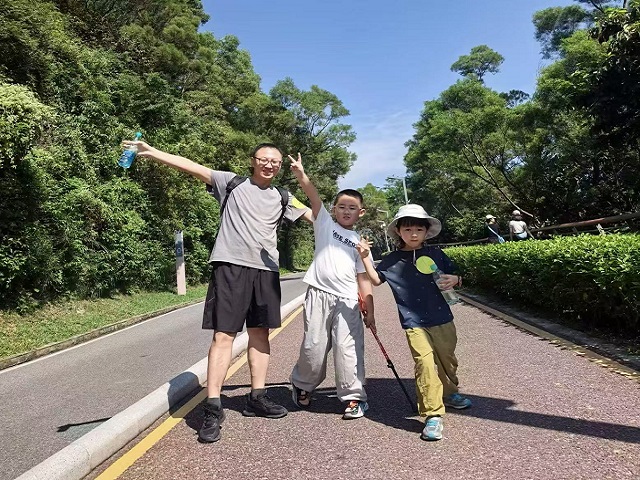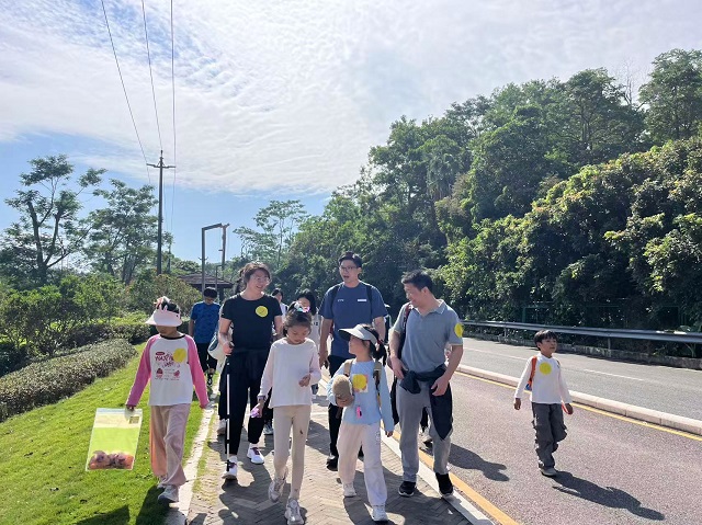 活动当天,参与活动的家庭按时在指定地点集合。在专业领队的带领下,大家进行了热身运动,为接下来的徒步做好充分准备。随着一声 “出发”,亲子家庭结伴踏上淘金山绿道的徒步征程,家长和孩子们一边欣赏着沿途的美景,一边享受着亲子同行的惬意时光。