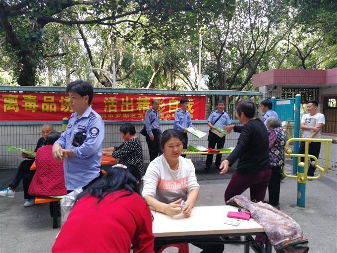 2018年12月3日下午,花场社区工作人员在128大院开展“远离毒品诱惑,活出精彩自我”为主题的禁毒知识宣传活动。
