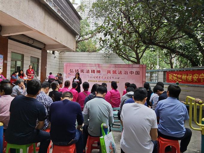 2018年12月5日下午,花场社区开展“弘扬宪法精神,共筑法治中国”为主题的12.4国家宪法日宣传活动。