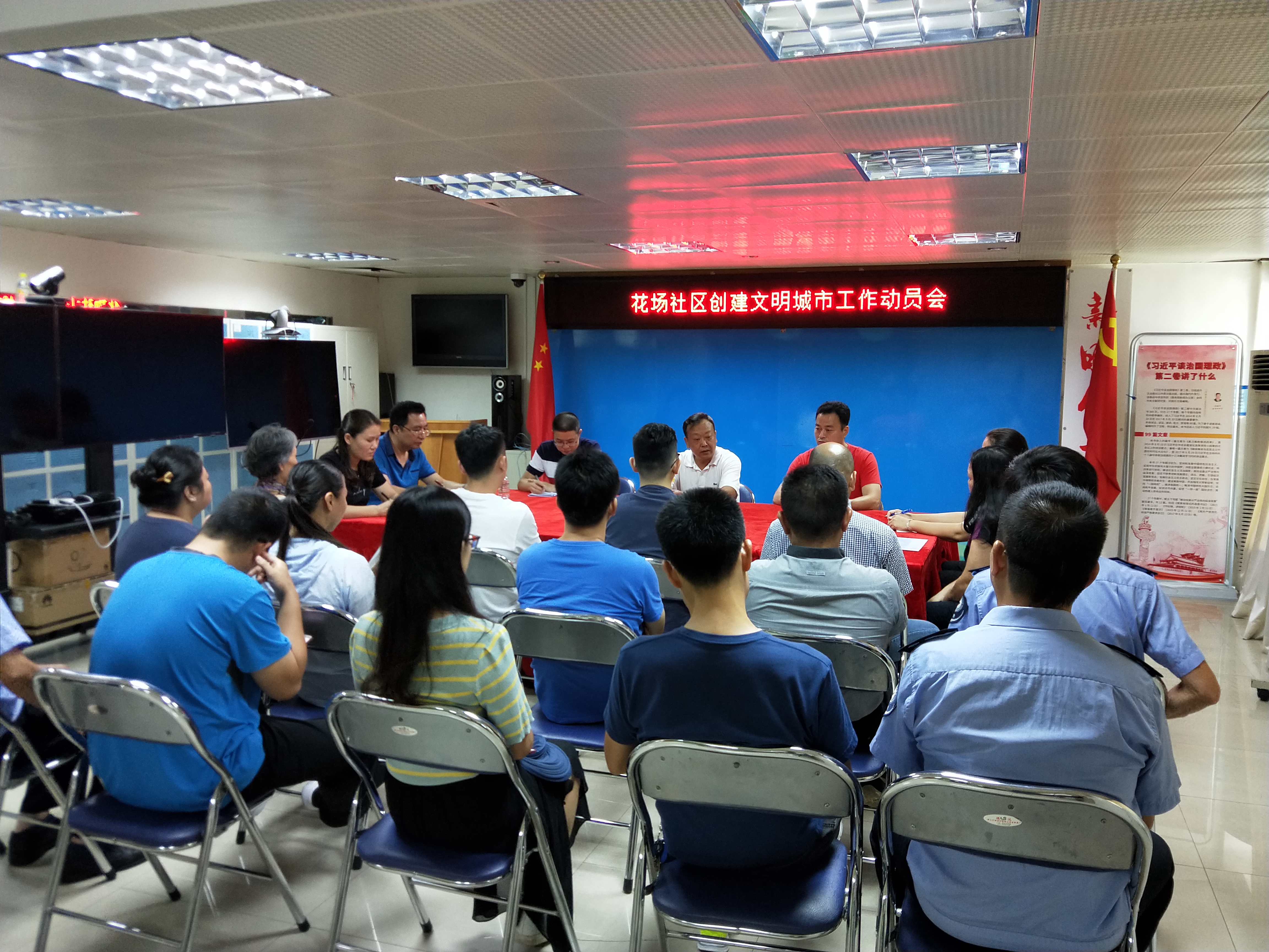 罗湖家园网讯 2019年8月16日上午,花场社区召开创建文明城市工作部署会,会议邀请了第一书记资义宏主讲,党群部副部长罗文、花场社区全体工作人员参会。