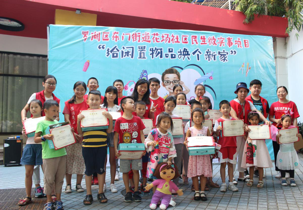 罗湖家园网讯 2019年9月21日下午,阵阵微风吹散了闷热,花场社区民生微实事项目“给闲置物品换个新家”——公益跳蚤市场第三场活动也在欢声笑语中拉开了帷幕。作为本项目的最后一场活动,依然是吸引了不少小摊主和居民前来参与。