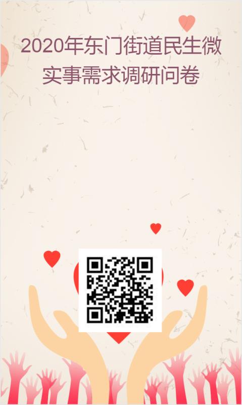 亲爱的花场居民朋友,民生微实事项目让群众”自主点菜”的方式,旨在激发居民参与社区治理的热情,为社区居民提供有温度、精准化、精细化服务,提升社区宜居质量。东门街道现已开展网络问需,社区居民只需要点击以下链接https://www.wjx.cn/jq/70521063.aspx,或者用手机微信扫一扫图片的二维码,即可进入东门街道民生微实事项目的问需界面,请居住在花场辖区的朋友们选择“花场社区”。将你们的想法、需求和建议告诉我们,后续我们会进行问需收集和汇总,筛选出符合社区实际情况的需求议案,并形成初步项目,欢迎社区居民积极参与,相互传达!