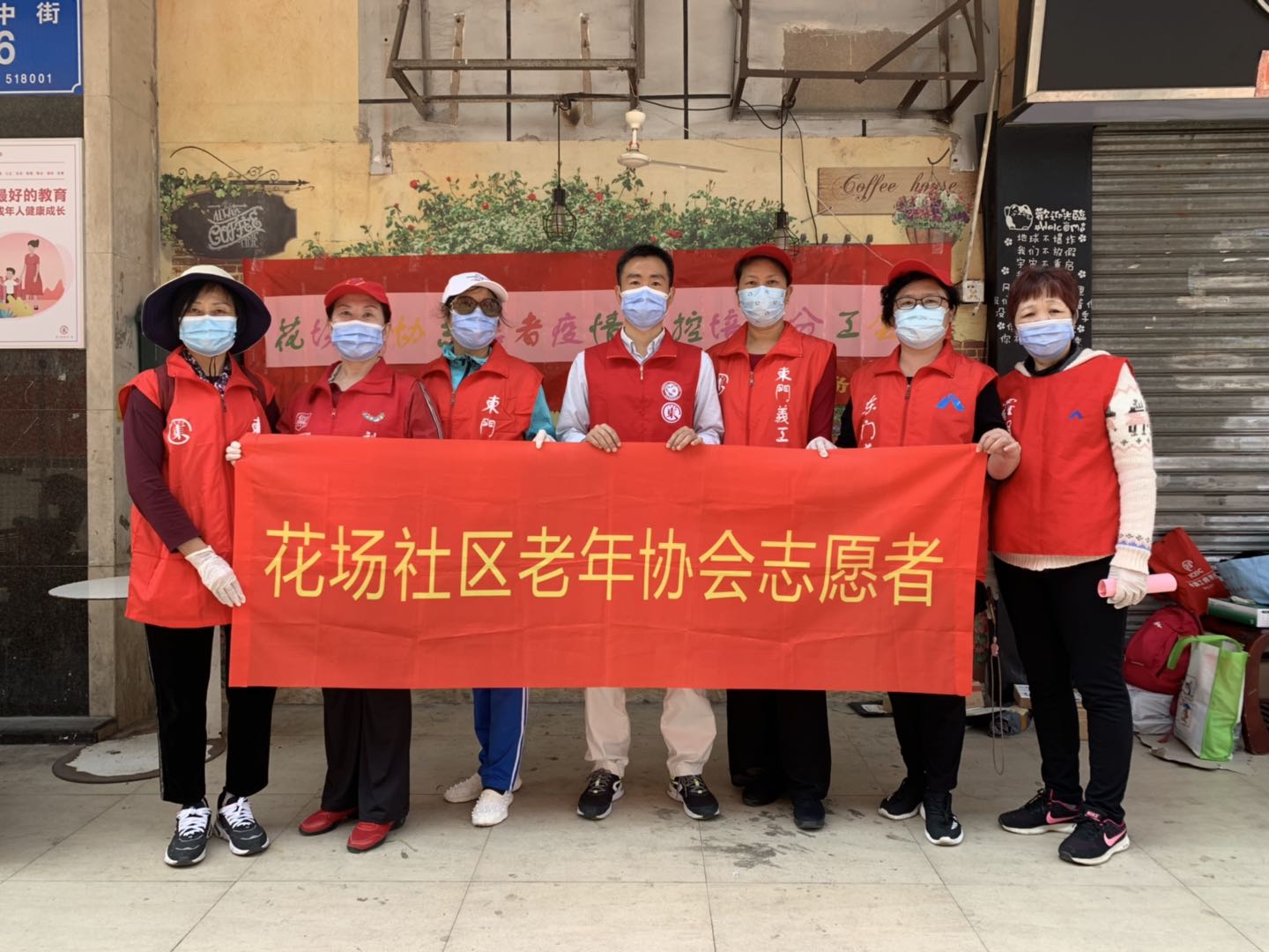 花场社区深中街5号、10号因没有物业管理,疫情前期由花场社区的社工负责疫情防控。花场社区老协刘兰香会长疫情后不久就向社区工作站请求能够为社区疫情防控做点贡献。社区工作站考虑老协志愿者年龄偏大,为了志愿者身体健康,一直没有同意。随着全国疫情基本得到了控制,深圳也被列为低风险地区。4月10日花场社区老协的志愿者们终于走上社区防疫岗位。上岗前由前期一直在疫情防控的社工对花场老协志愿者们进行了疫情防控培训。