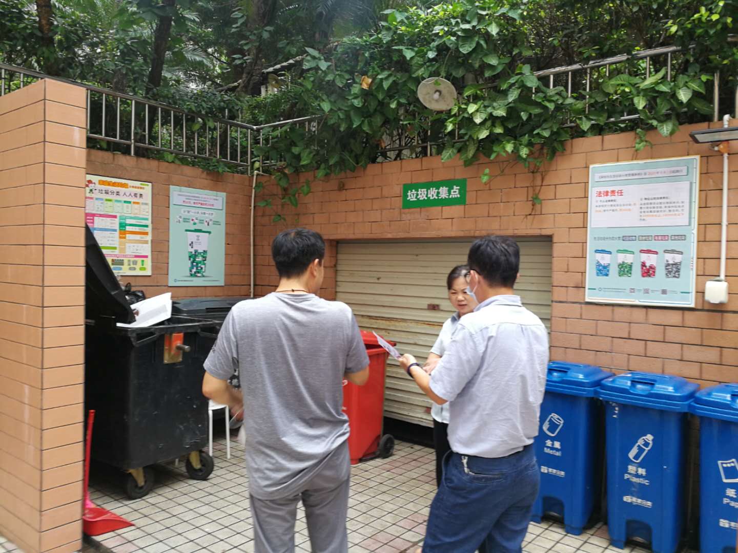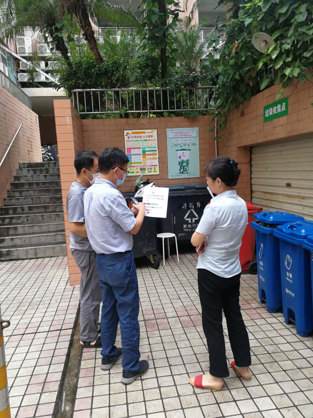 2020年9月8日,花场社区城管专干到辖区各管理处督促物业负责人继续做好垃圾分类工作。