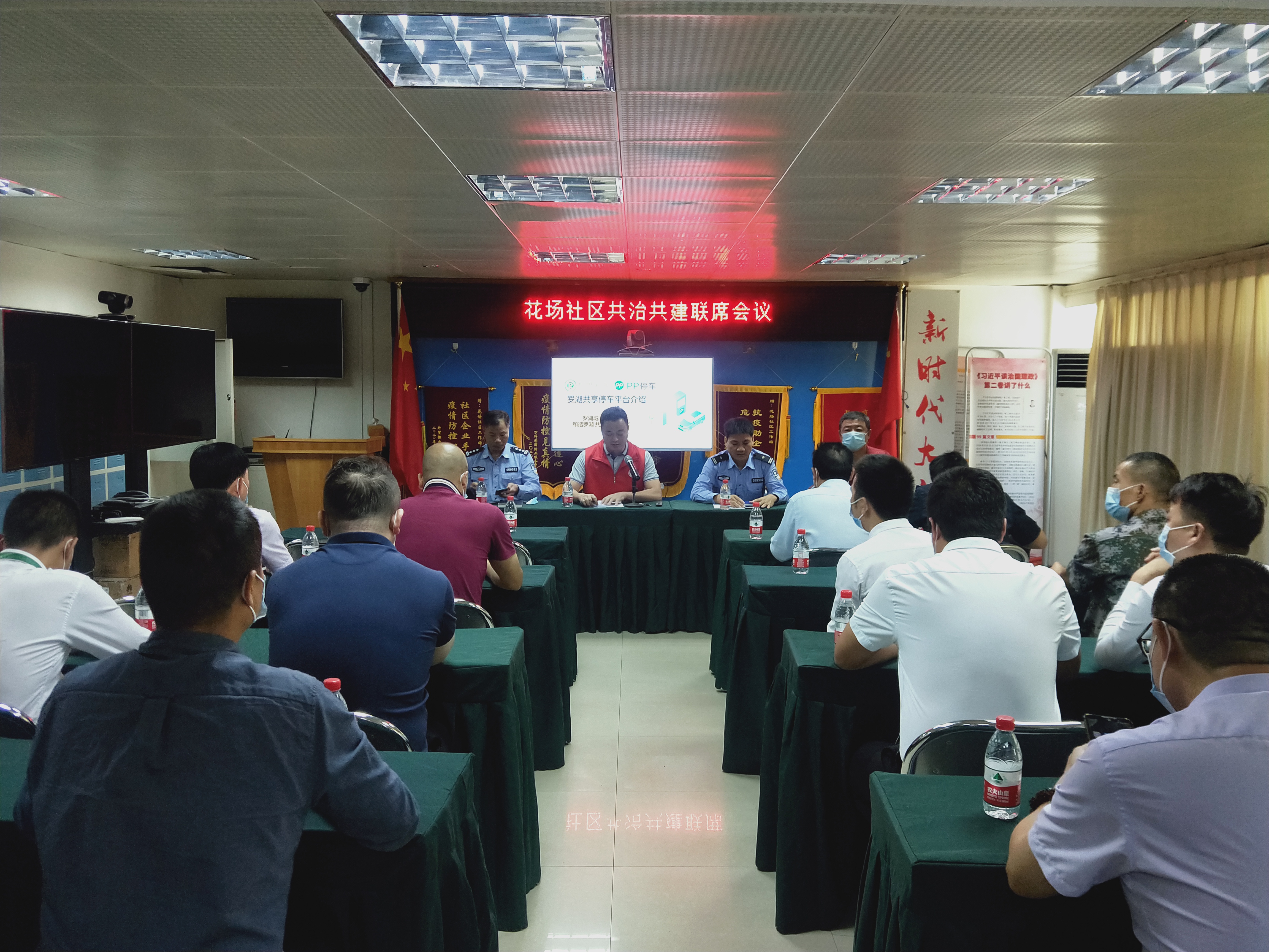 2020年10月21日,花场社区召开共建共治联席会议,此次会议参会人员有:深中警务室警长、花场社区党委副书记、副站长、辖区各物业代表。