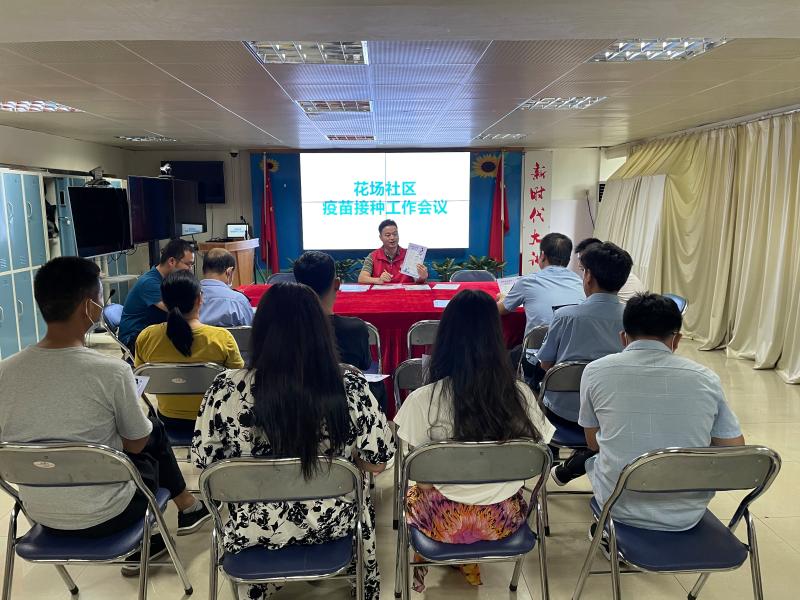 罗湖家园网讯:2021年5月17日,花场社区召开疫苗接种工作会议。社区党委书记王志忠主持此次会议,王书记首先传达省、市、街道疫苗接种工作会议精神,并指出,工作人员要立足当前,做好宣传发动,摸底调查、疫苗接种等工作。会议后,王书记走访辖区各大商铺,提醒商户布料城人口密集,人流量大,接种新冠疫苗能有效保障个人安全,呼吁符合条件的商户尽早接种。