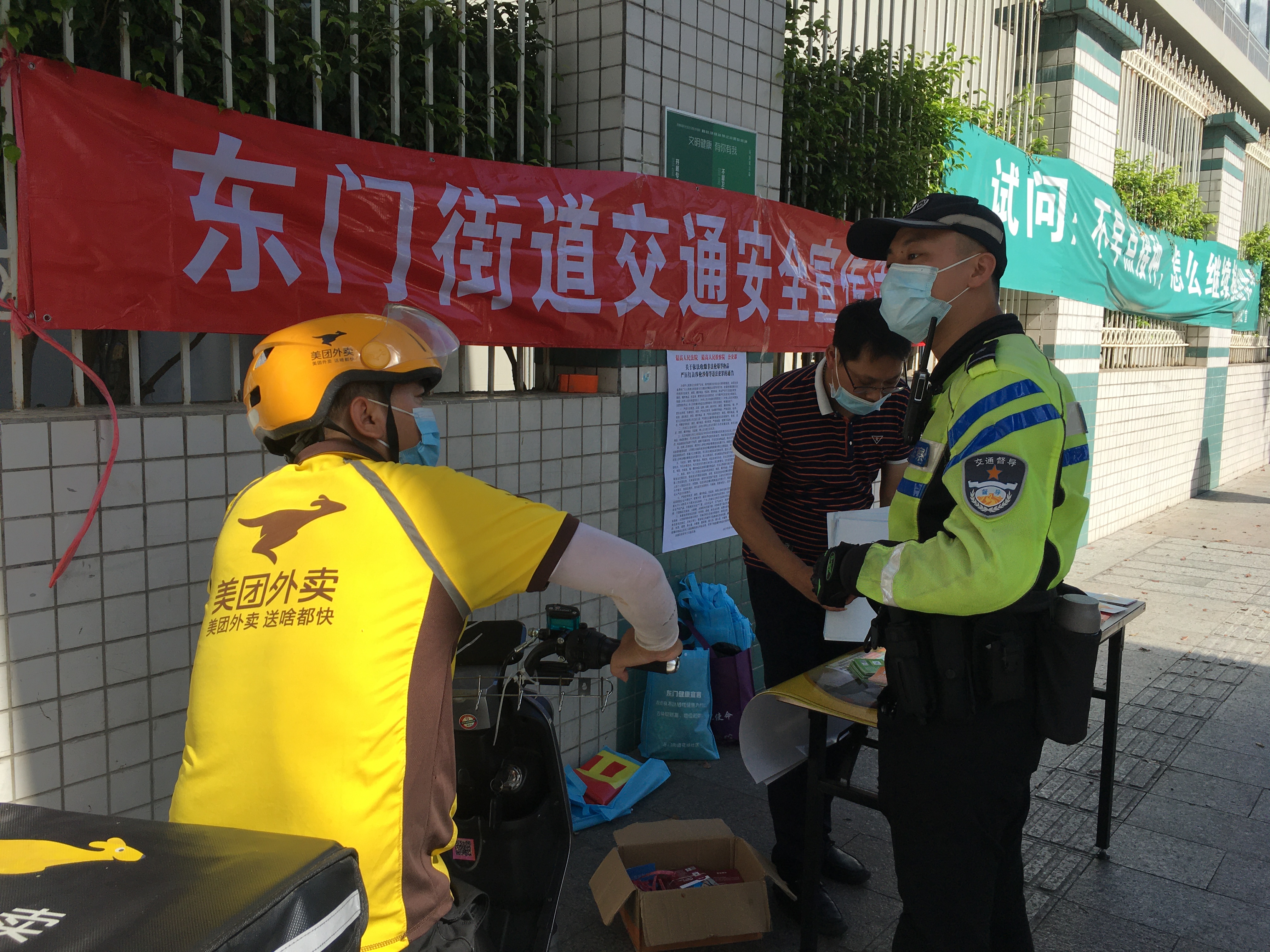2021年6月11日,花场社区联合东门街道交安办和罗湖交警大队东门中队在人民北路进行安全生产月和交通安全宣传活动。