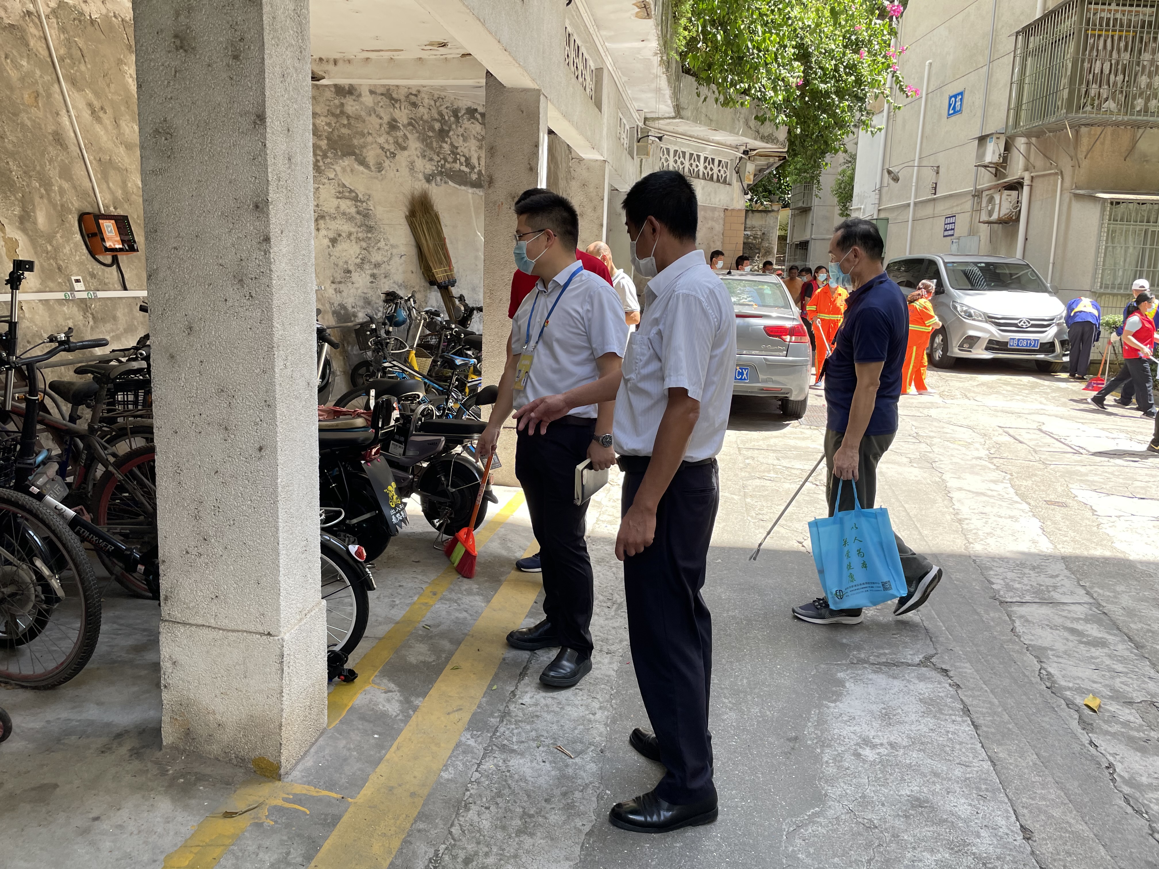 罗湖家园网讯 2021年7月15日,花场社区第一书记带队到128大院进行环卫迎检。