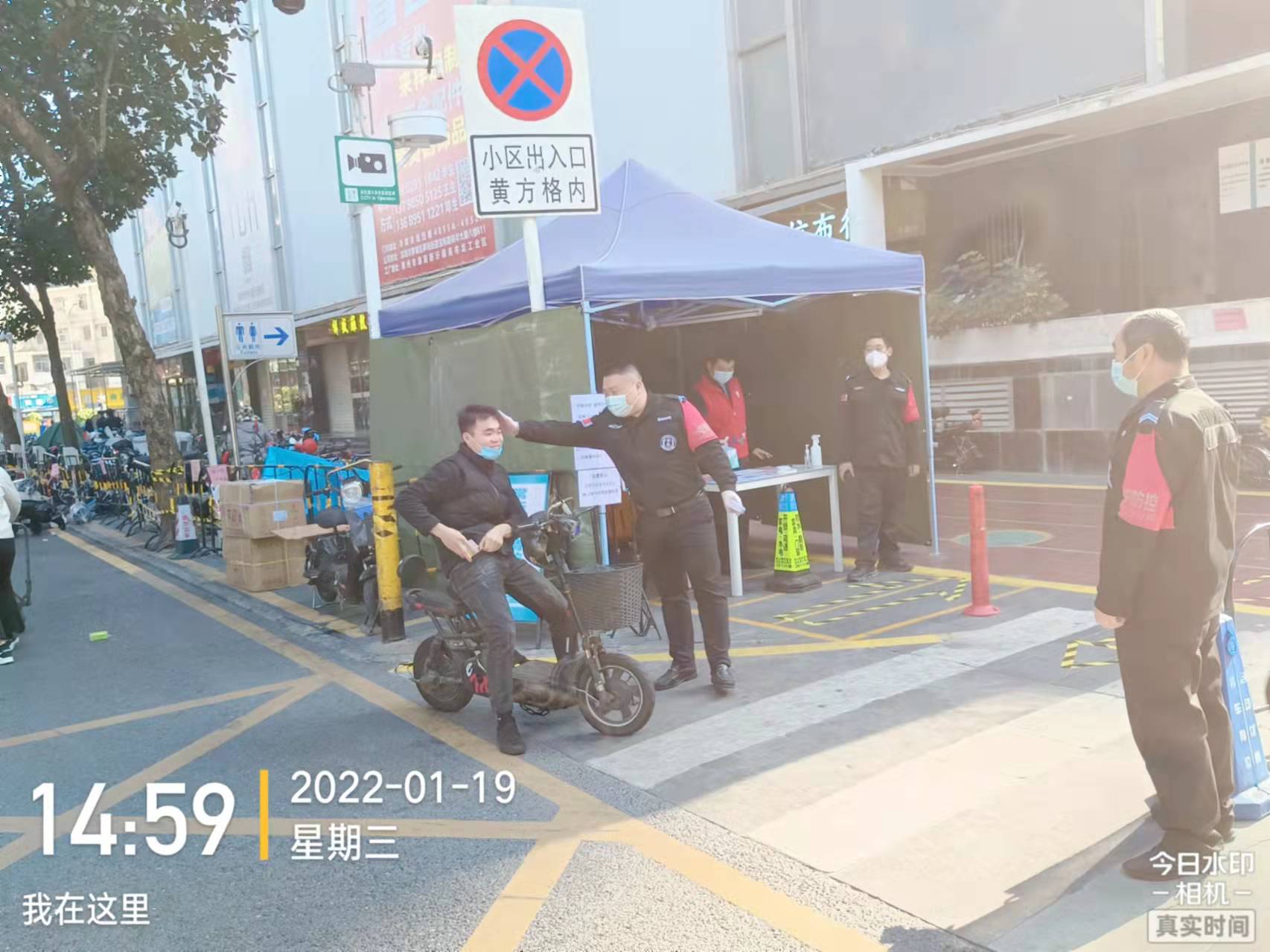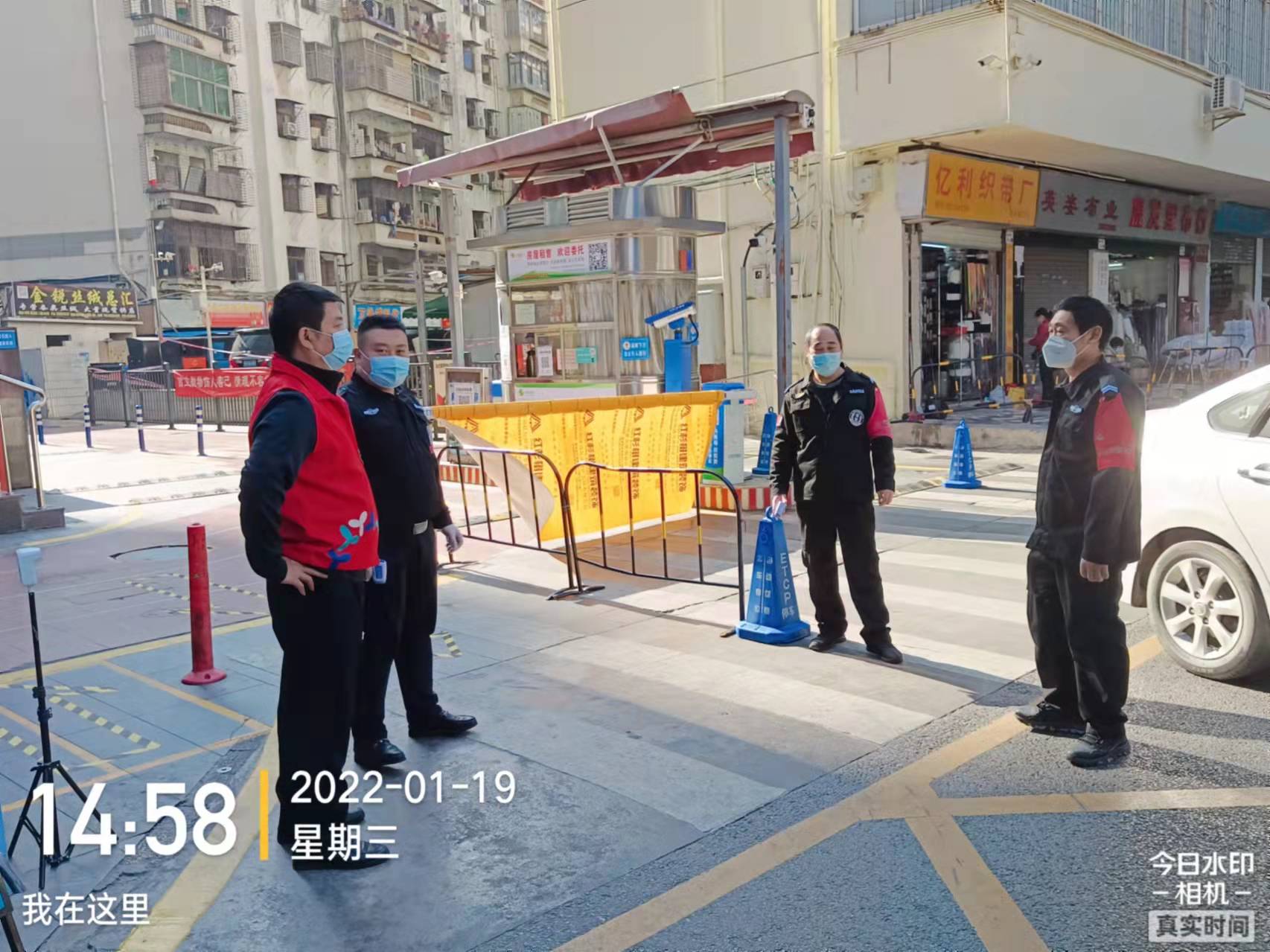 罗湖家园网讯:2022年1月19日,由于疫情形势严峻,为了加强卡口管理,社区对东悦名轩小区卡口进行巡查。一是切实发挥卡口查验预警作用,严防省外疫情输入风险;二是定期巡查各小区物业卡口管理情况,确保物业管理处将疫情防控措施落实到位。