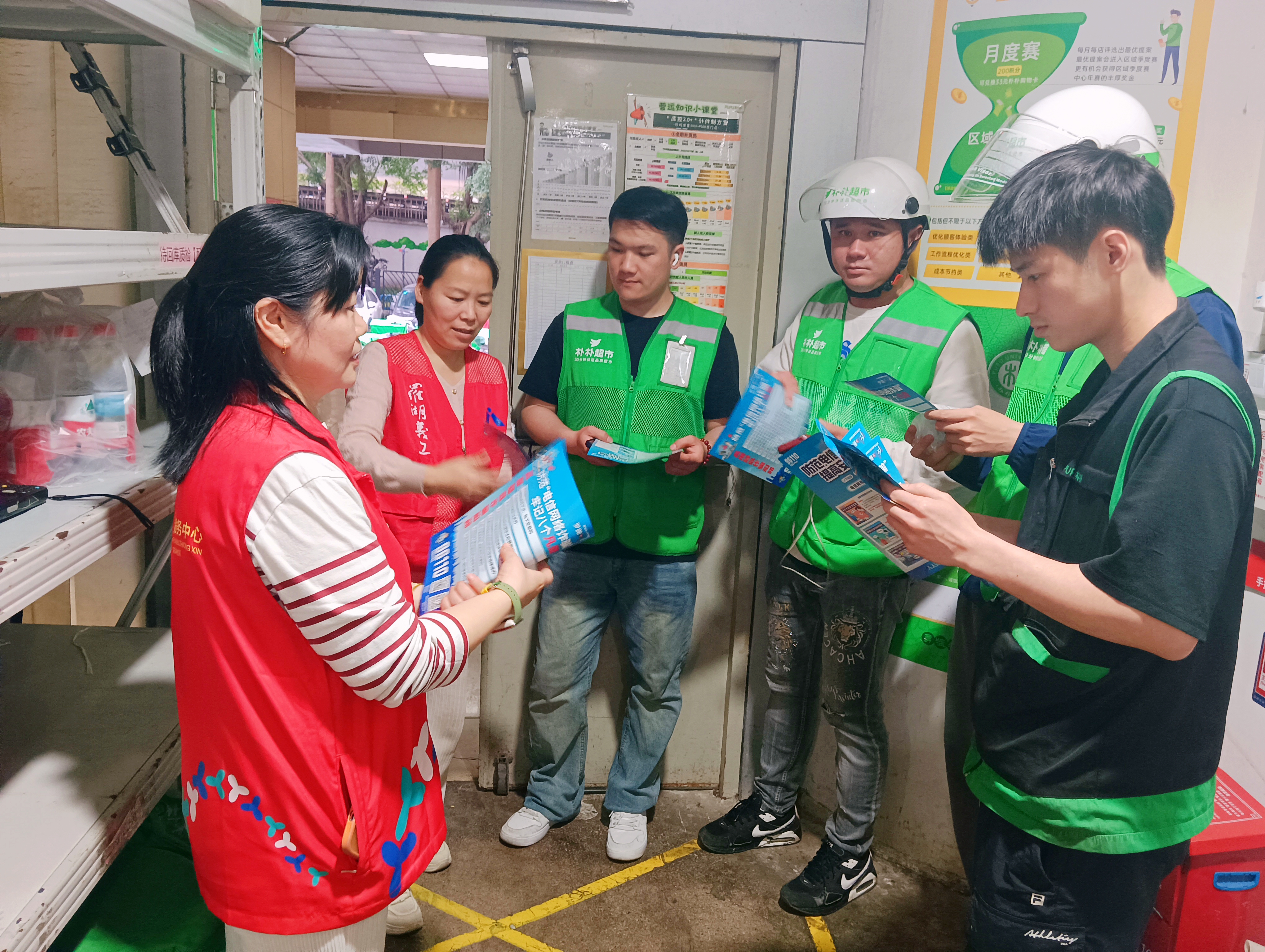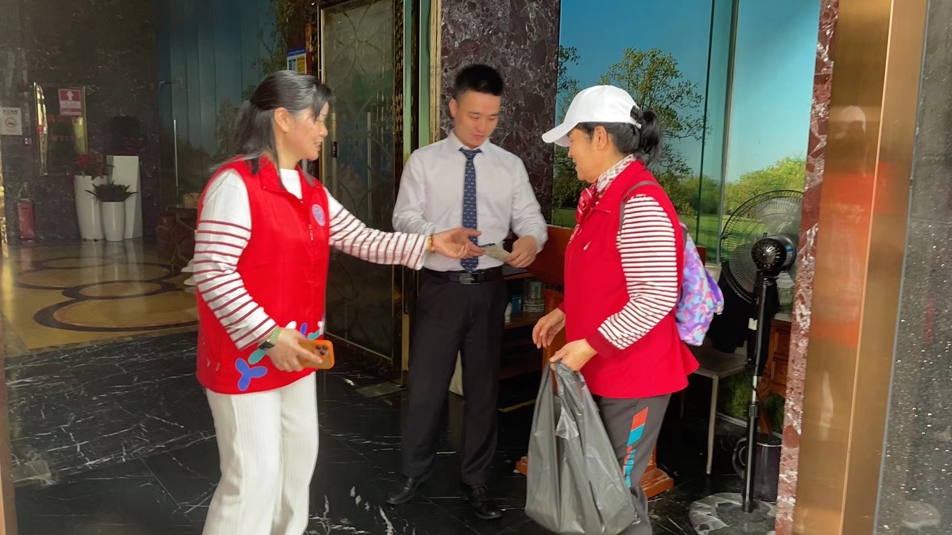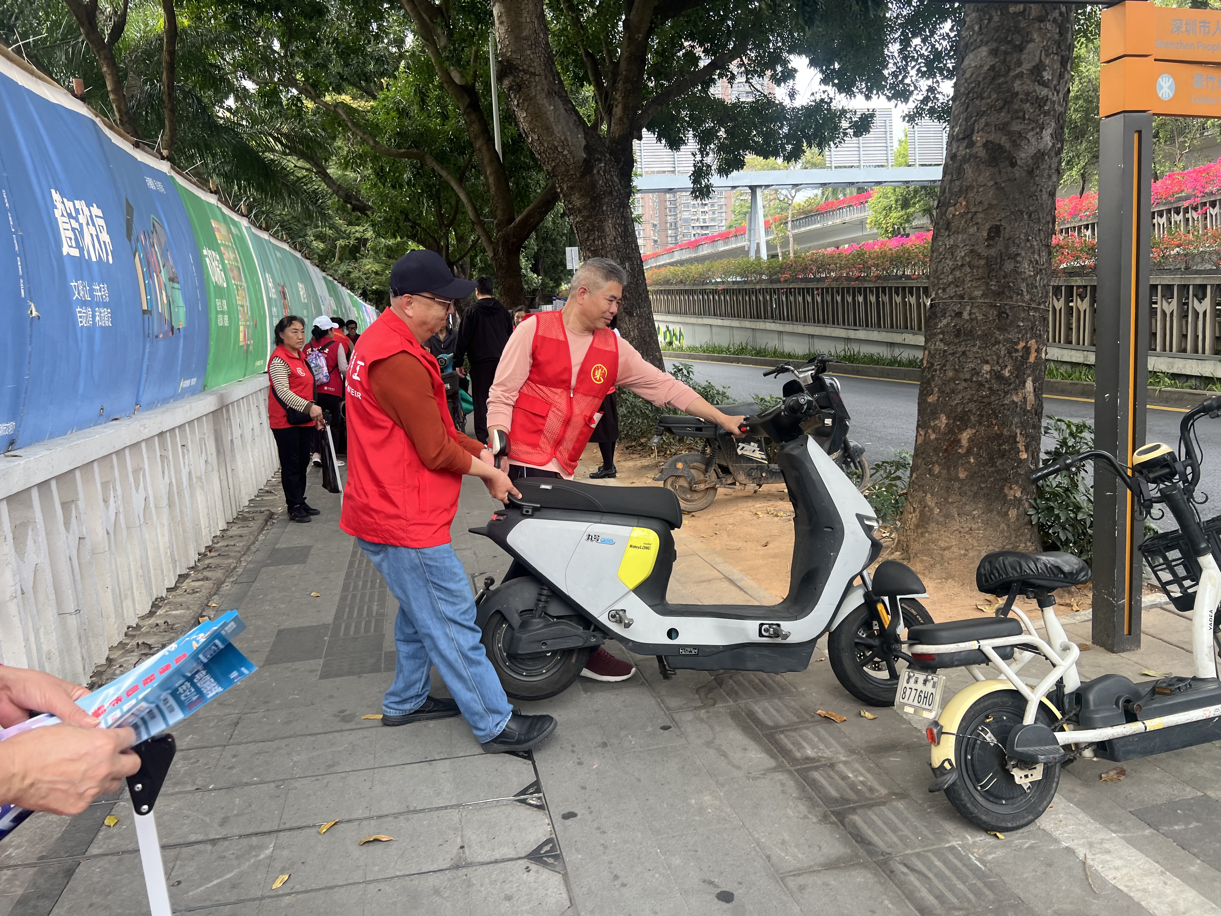 随后,志愿者们分成两组,穿梭在社区的各个角落,深入开展“新”志愿服务关爱行动。对辖区内的居民、环卫工人、建筑工人以及快递员、网约配送员等新就业群体进行消防安全、交通安全、有限空间作业安全、防诈骗等知识的宣传,让大家更加重视安全问题,提高自我保护意识。其中,一位网约配送员表示“非常感谢社区志愿者们的关心,为我们普及安全知识,在工作中我会时刻注意自身安全”。同时,志愿者们还认真地清理着路面垃圾,将电动车和共享单车摆放得整齐有序,让社区的环境焕然一新。