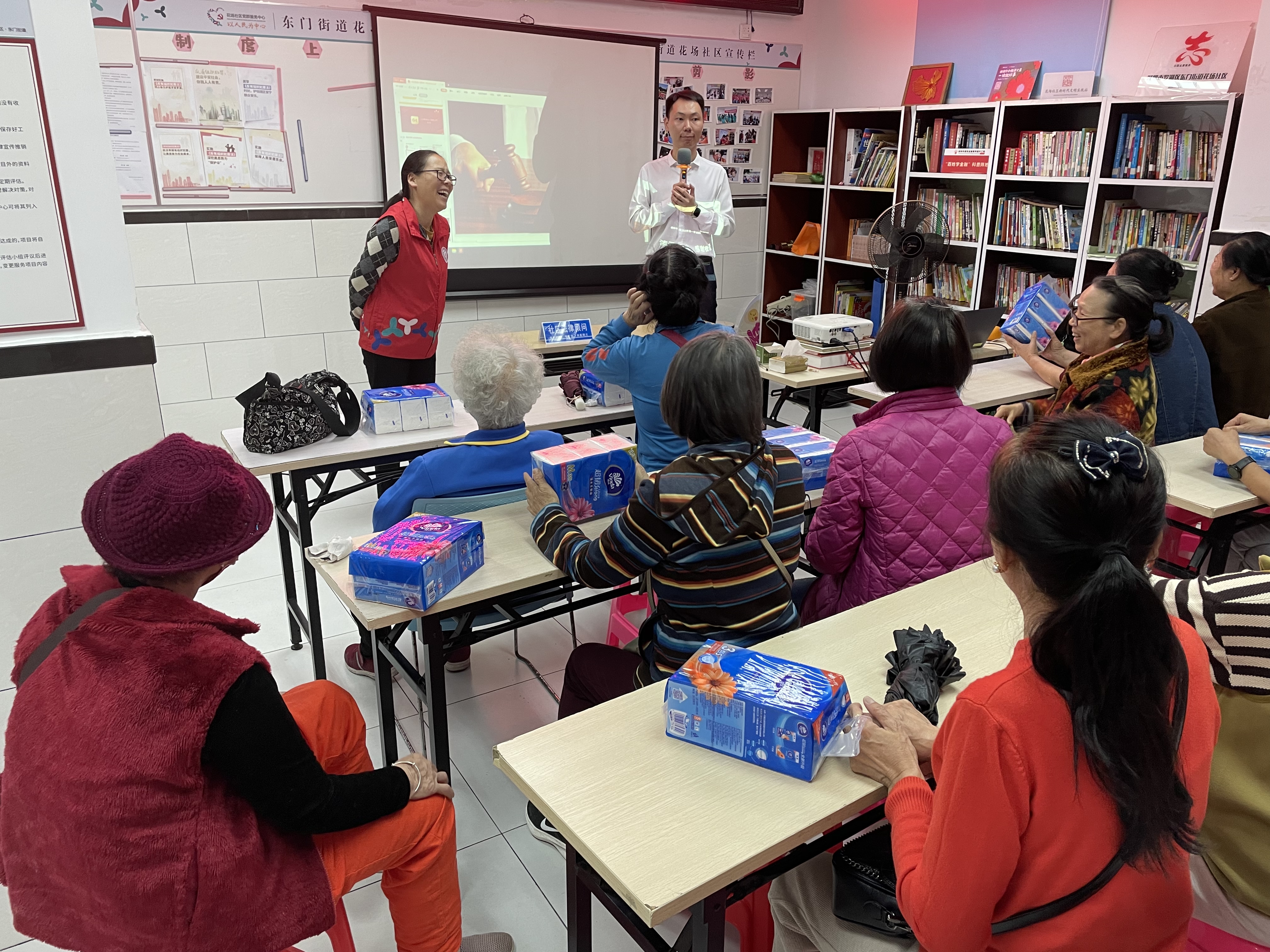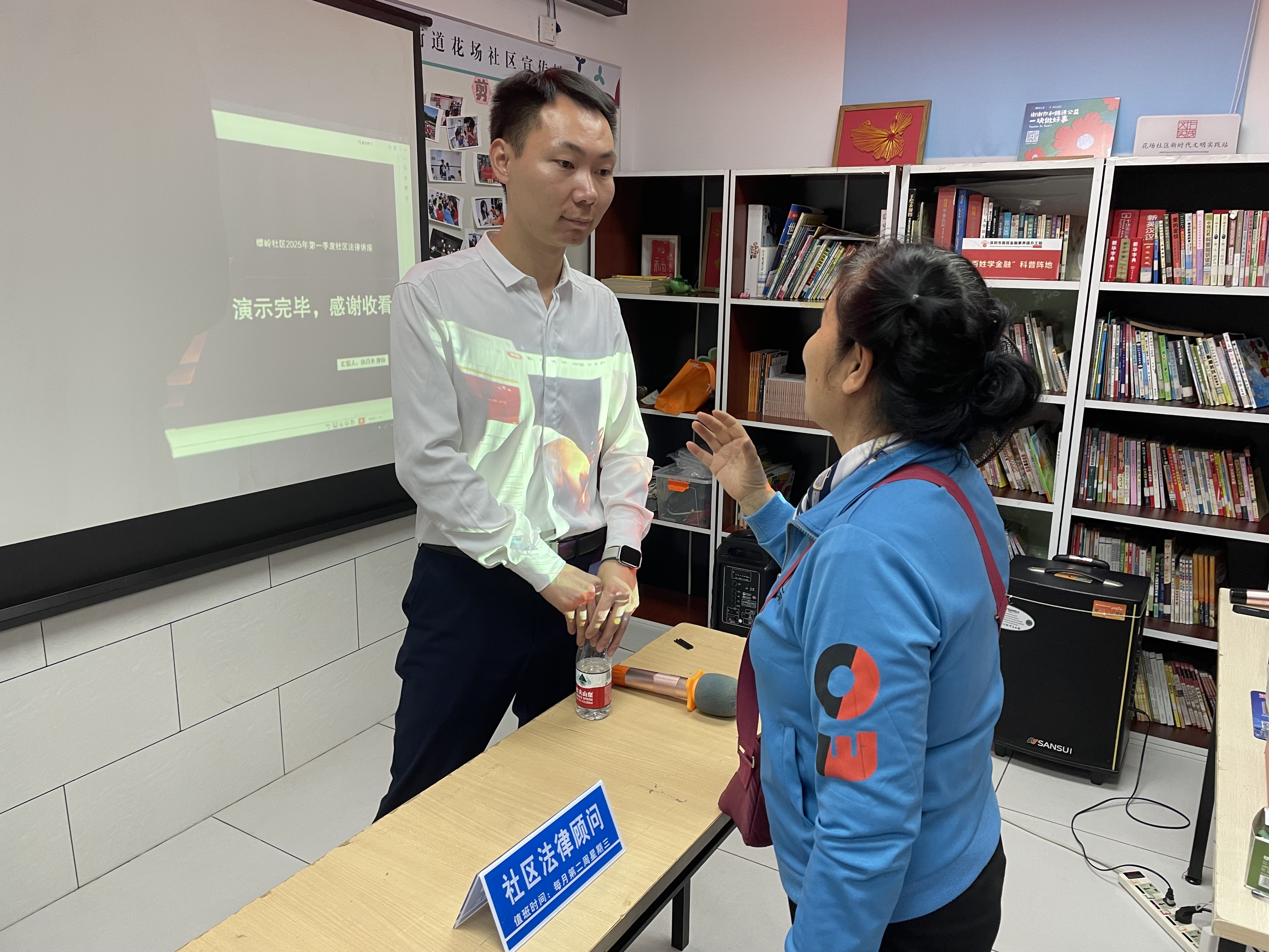 讲座后期,社工协助律师一起设立法律咨询台,现场解答居民们的法律疑问。还通过有奖问答、发放宣传手册的方式,大力宣传《妇女权益保障法》《反家庭暴力法》知识。妇女有哪些基本权益?当妇女权益受到侵害时怎么合法维护自己的权益?什么是家庭暴力?家庭暴力的受害者都是女性吗?什么是人身安全保护令?社区维权报案点及联系方式等都详细做了宣传和解答。